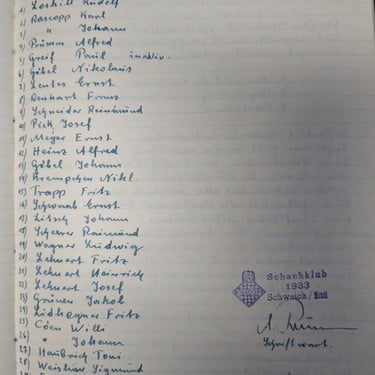Am Samstag dem 14.10.1933 fanden sich einige Schachfreunde im Lokale M. Max zusammen,